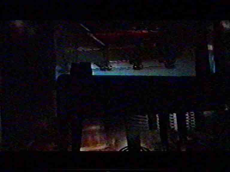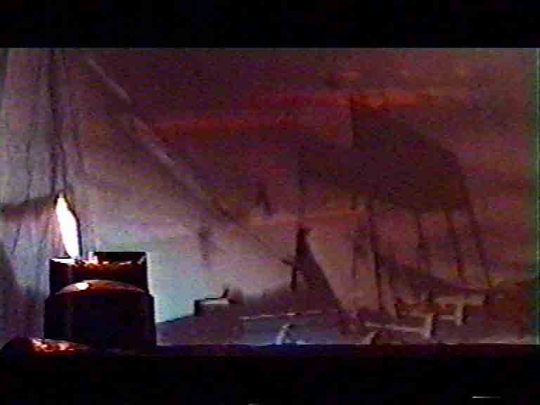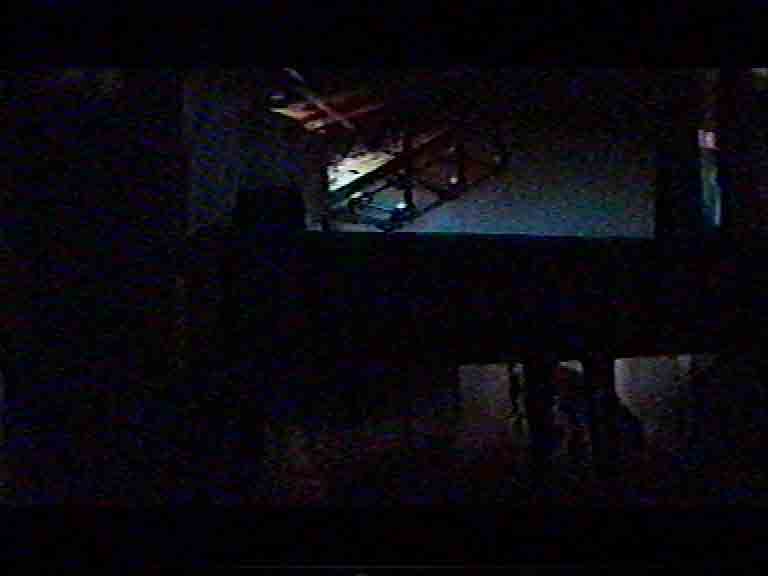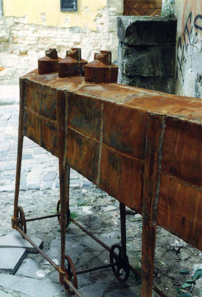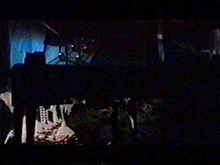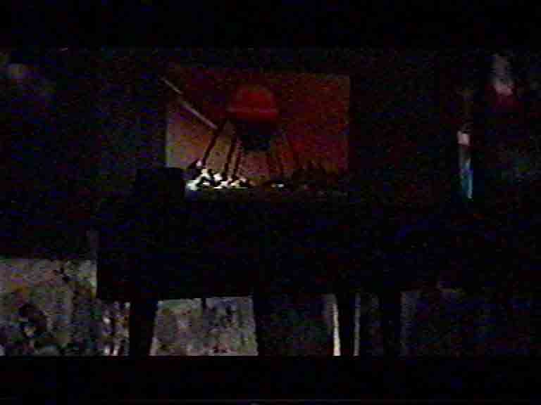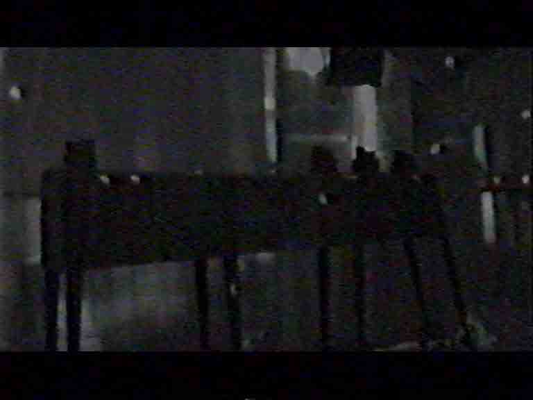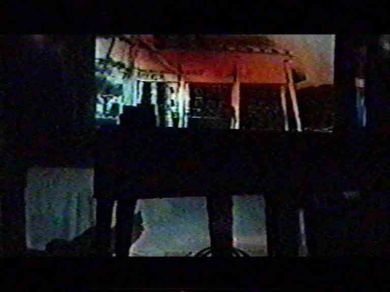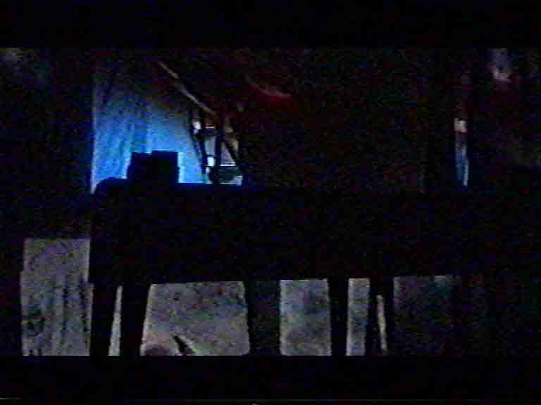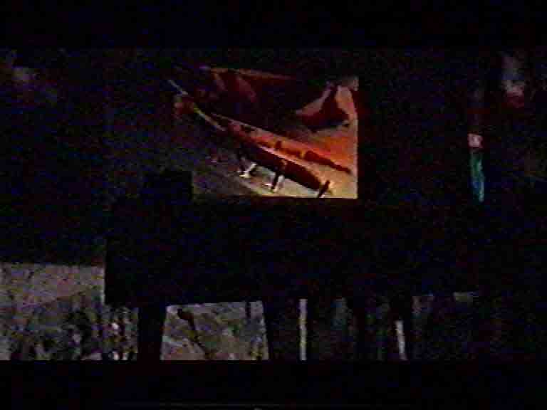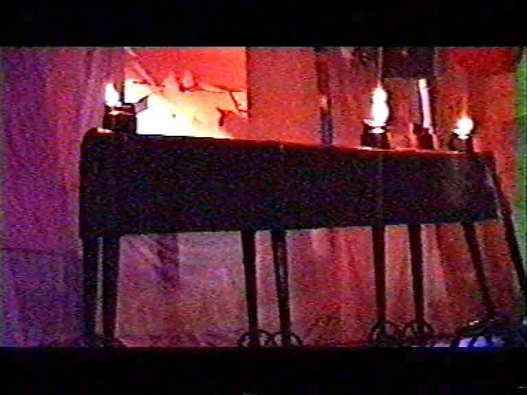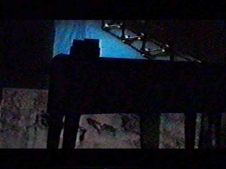 Performance “The Last Myth” with sculpture, fire and video. Night klub “Lyalka” in Lviv, 2000. Participants: Jan Potrohos (sculpture, instalation), Nirvana (3D modeling, animation), Viktor Lavnyi (installation, cutting), Artur Ruschak (sound track), Tanya Smriga (poetry), Taras Benyakch (audio), Ruslan Tremba and Maksym Sobuckyi (assistans).