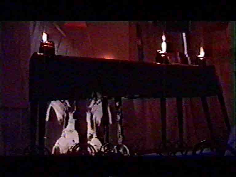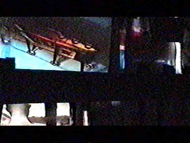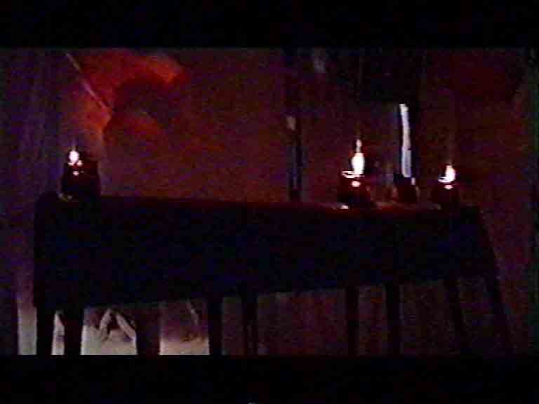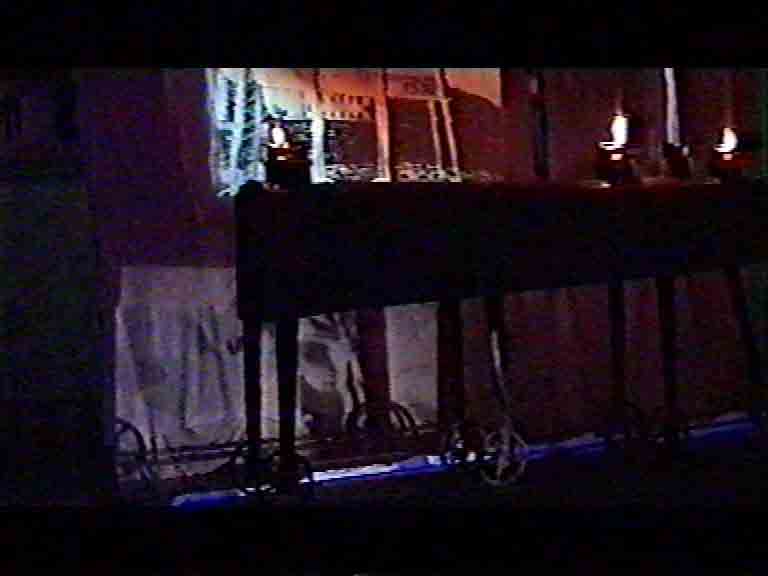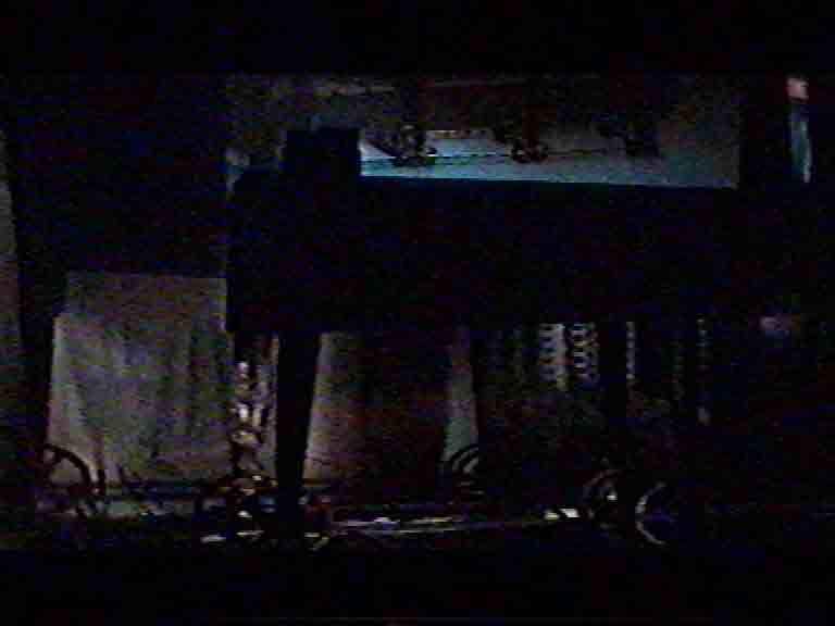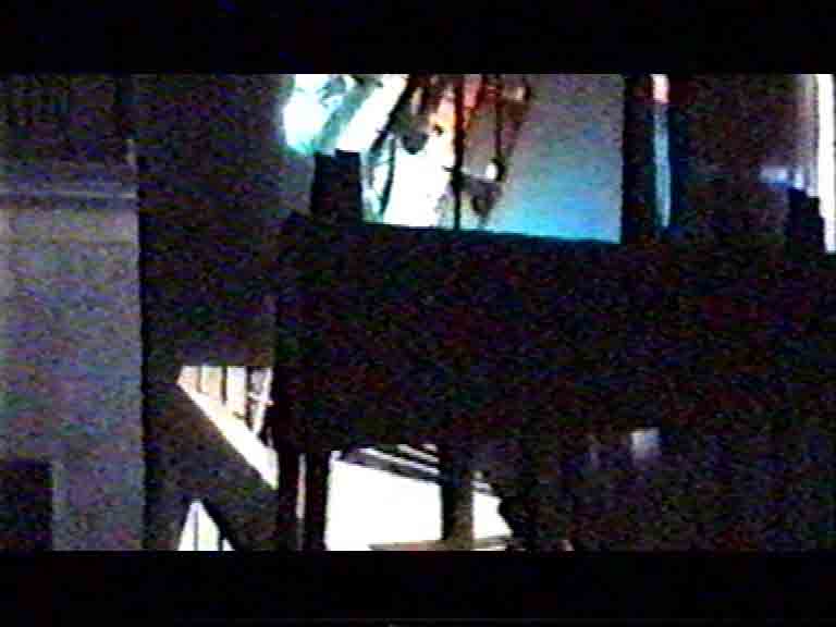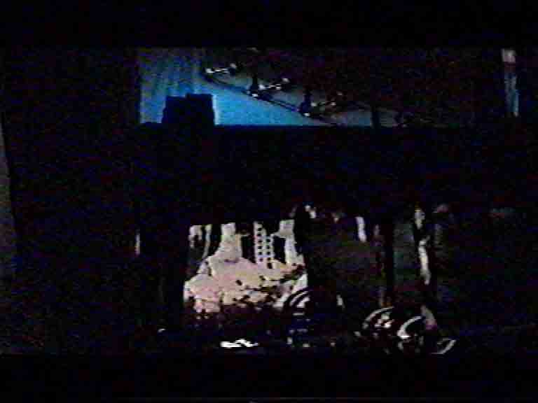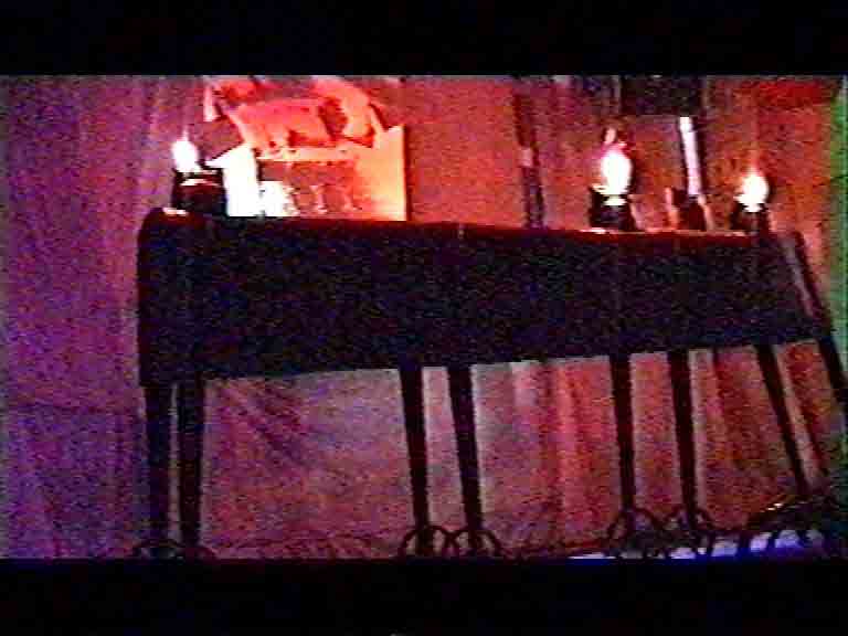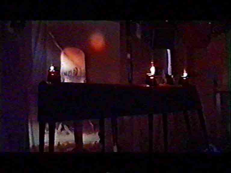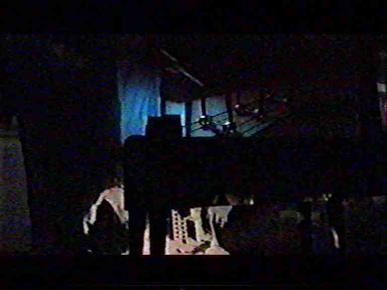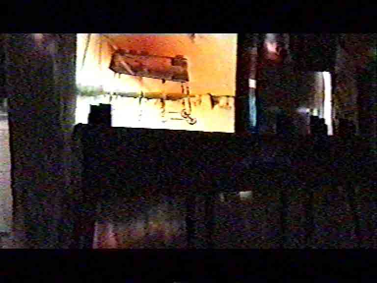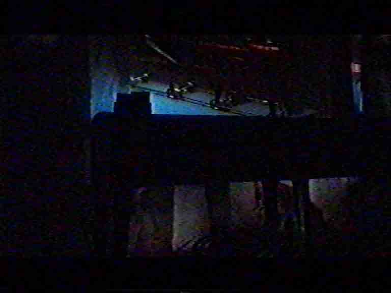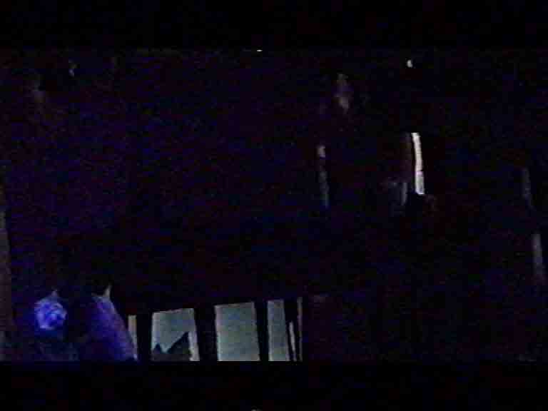Performance “The Last Myth” with sculpture, fire and video. Night klub “Lyalka” in Lviv, 2000. Participants: Jan Potrohos (sculpture, instalation), Nirvana (3D modeling, animation), Viktor Lavnyi (installation, cutting), Artur Ruschak (sound track), Tanya Smriga (poetry), Taras Benyakch (audio), Ruslan Tremba and Maksym Sobuckyi (assistans).
