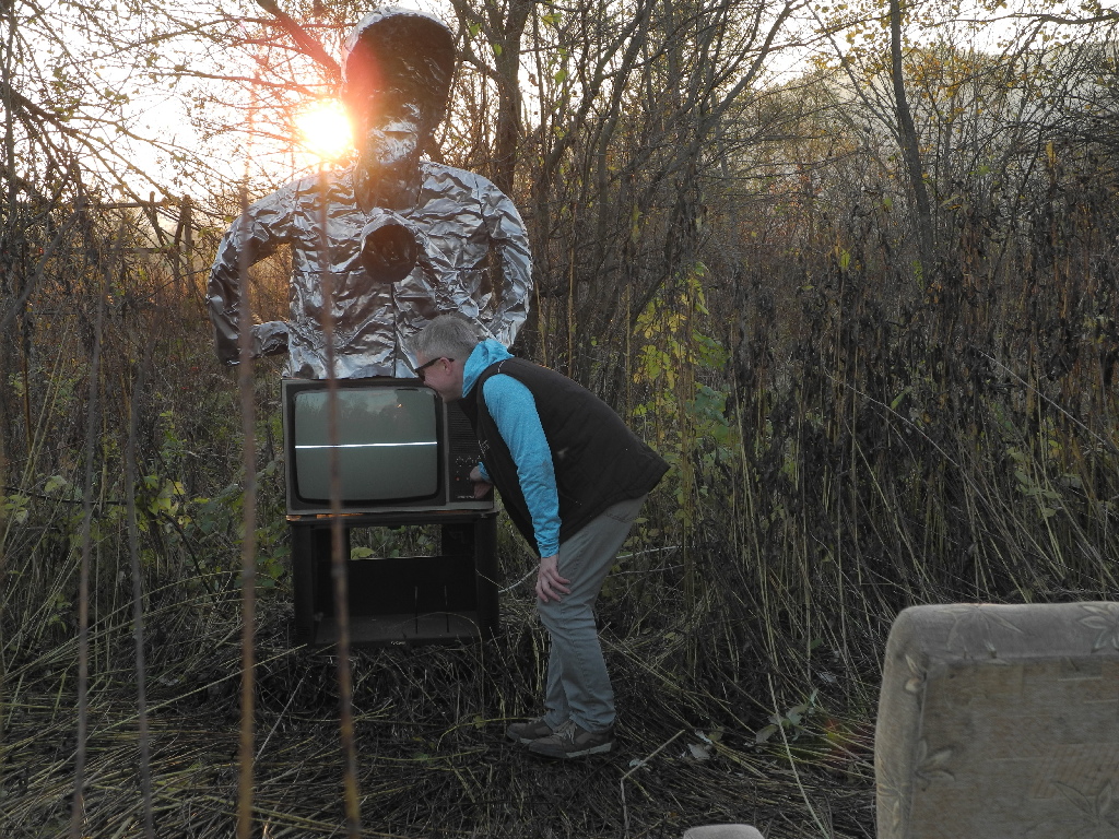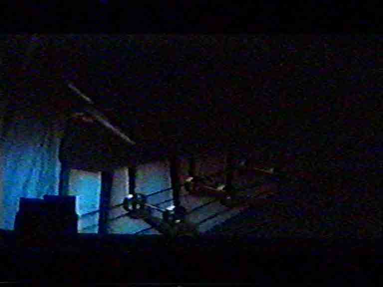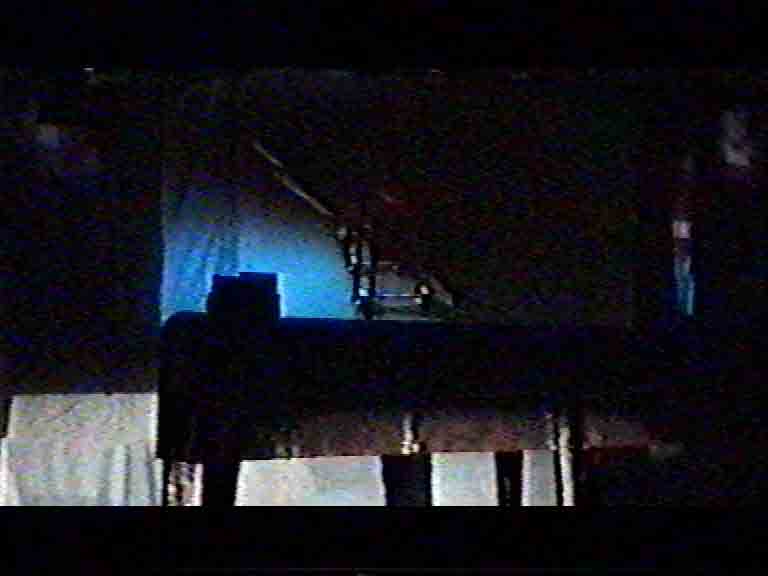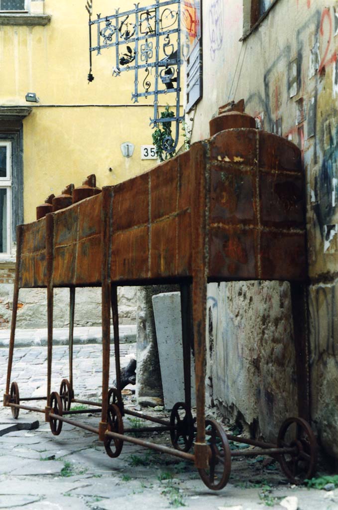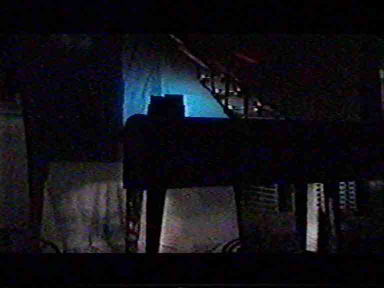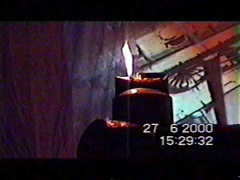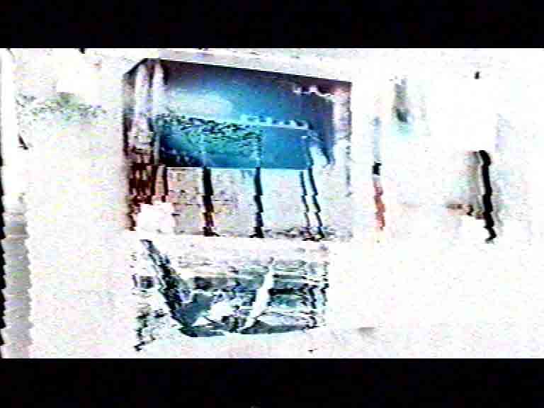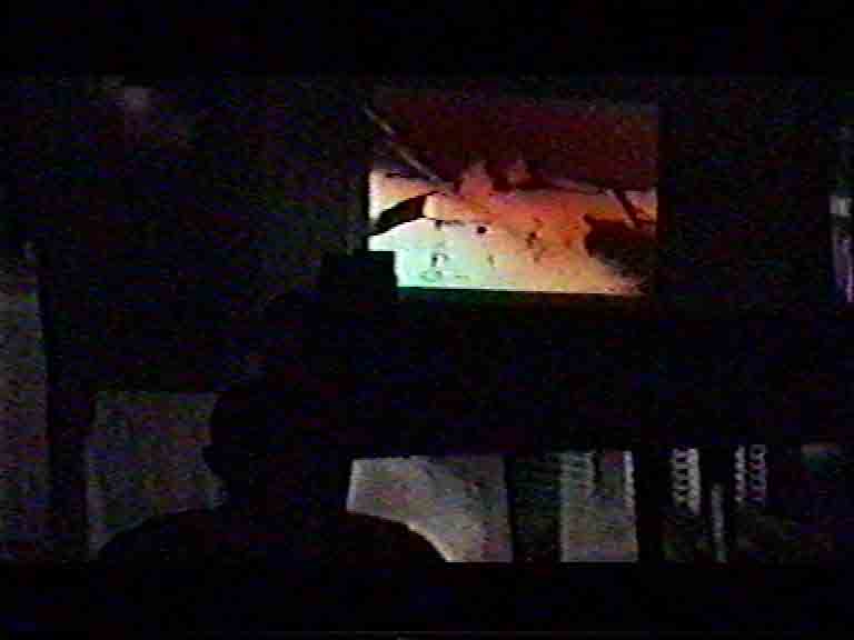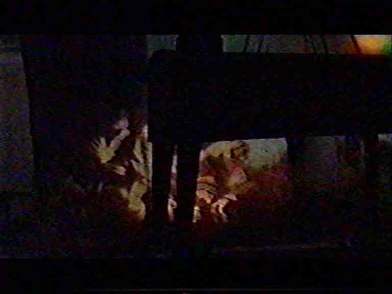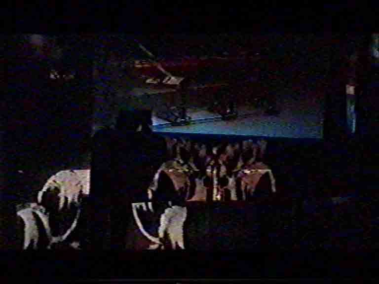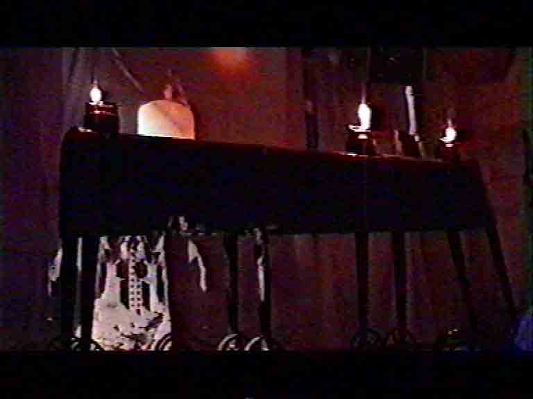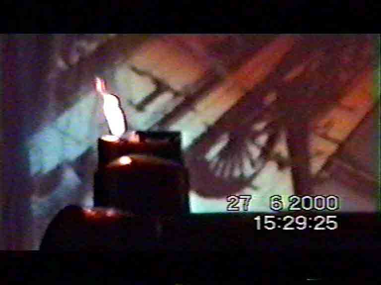 Performance “The Last Myth” with sculpture, fire and video. Night klub “Lyalka” in Lviv, 2000. Participants: Jan Potrohos (sculpture, instalation), Nirvana (3D modeling, animation), Viktor Lavnyi (installation, cutting), Artur Ruschak (sound track), Tanya Smriga (poetry), Taras Benyakch (audio), Ruslan Tremba and Maksym Sobuckyi (assistans).