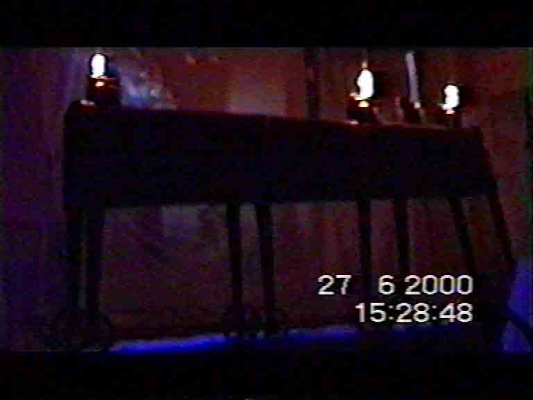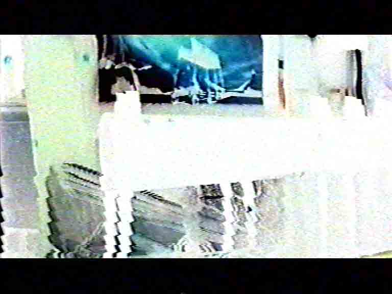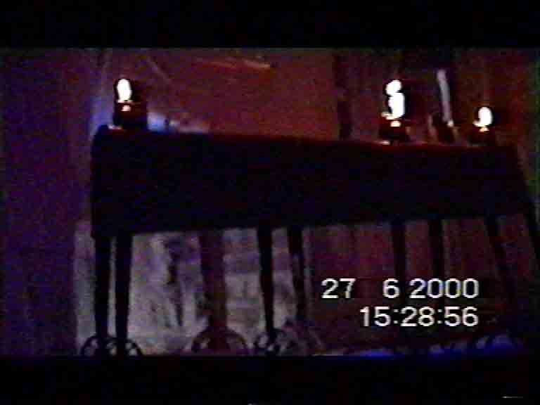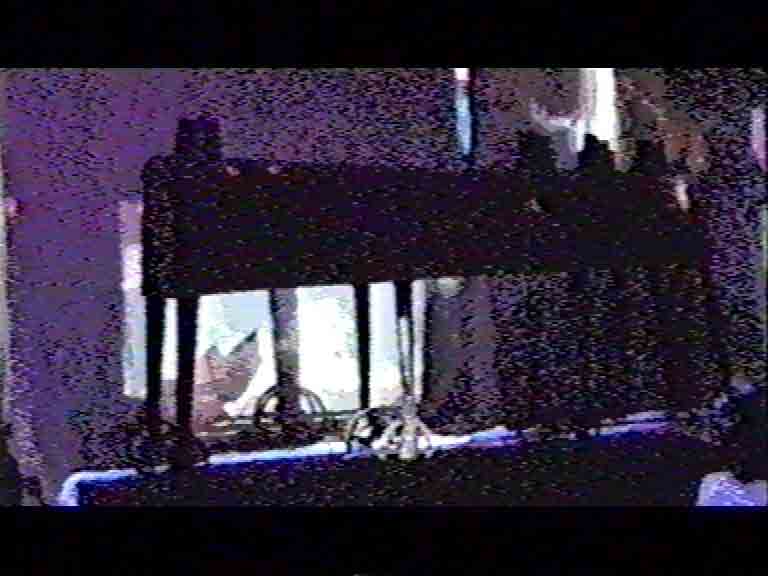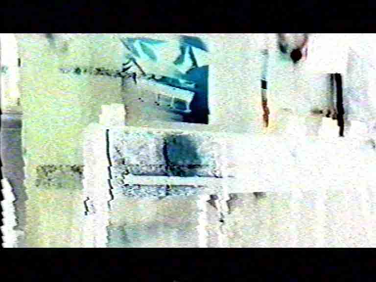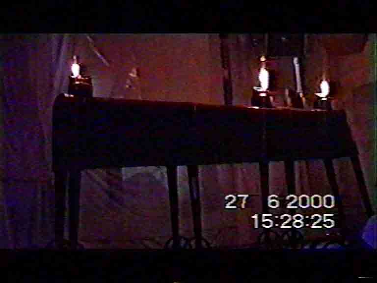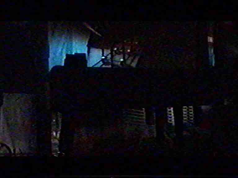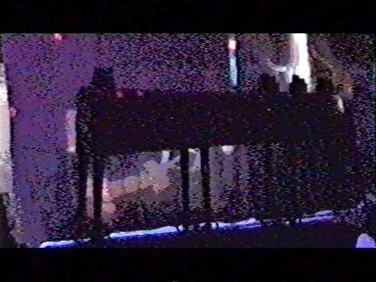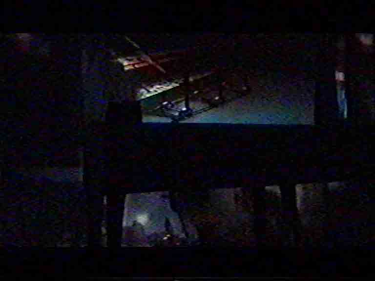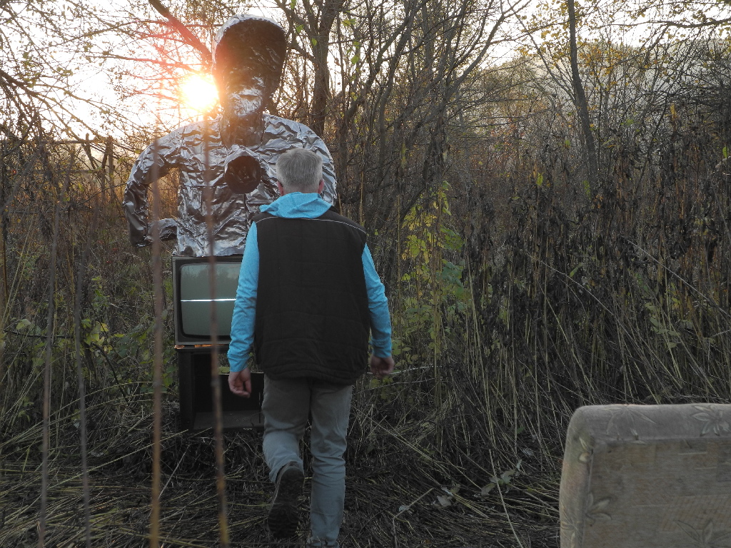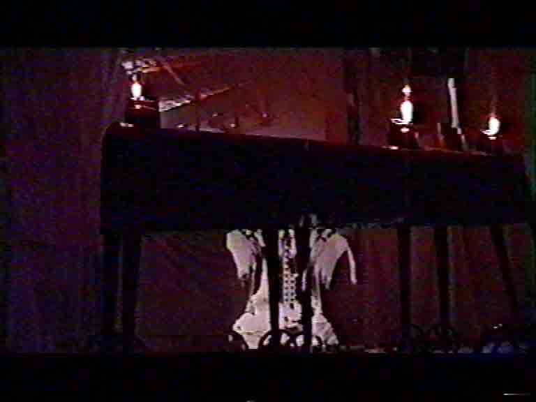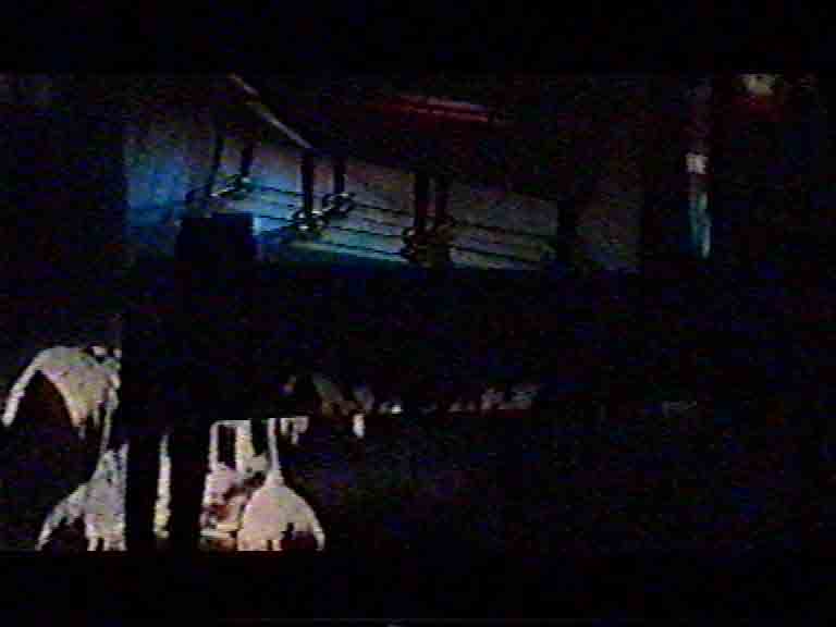 Performance “The Last Myth” with sculpture, fire and video. Night klub “Lyalka” in Lviv, 2000. Participants: Jan Potrohos (sculpture, instalation), Nirvana (3D modeling, animation), Viktor Lavnyi (installation, cutting), Artur Ruschak (sound track), Tanya Smriga (poetry), Taras Benyakch (audio), Ruslan Tremba and Maksym Sobuckyi (assistans).