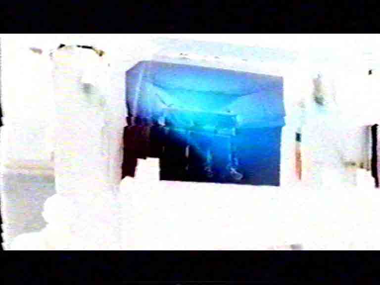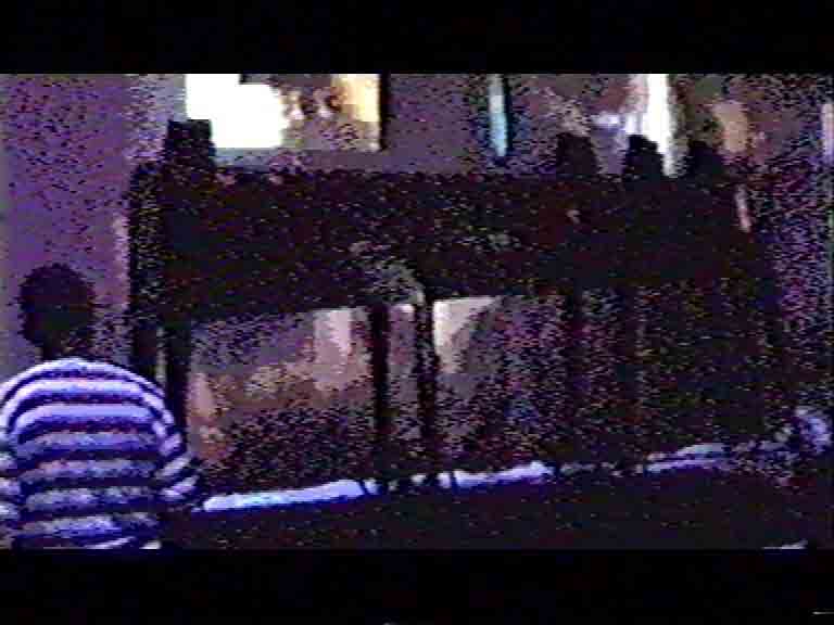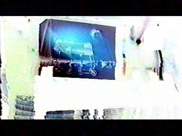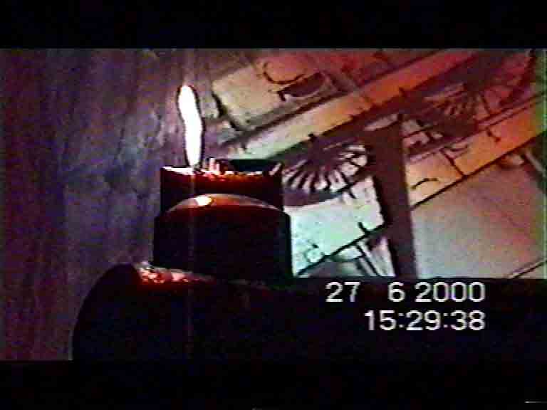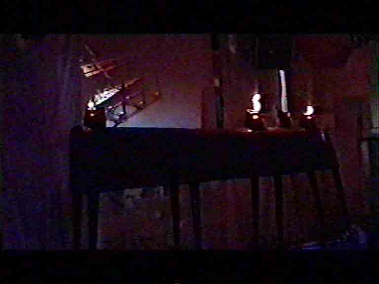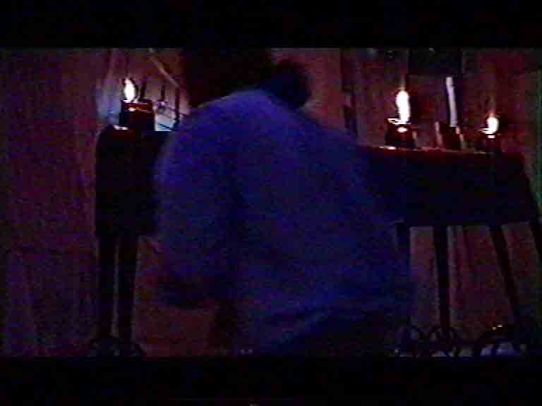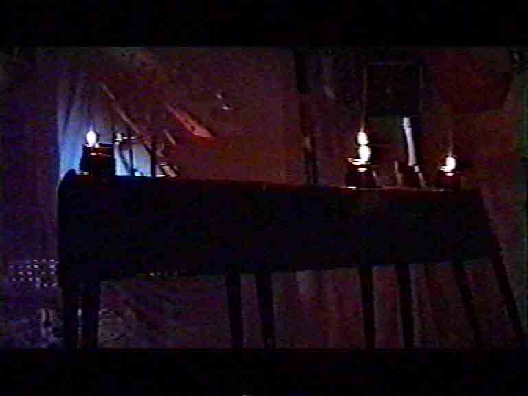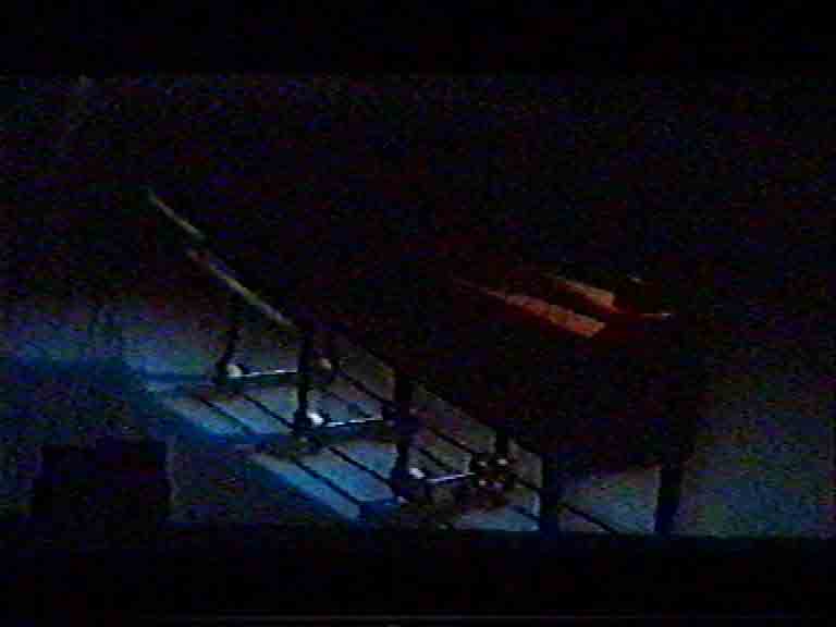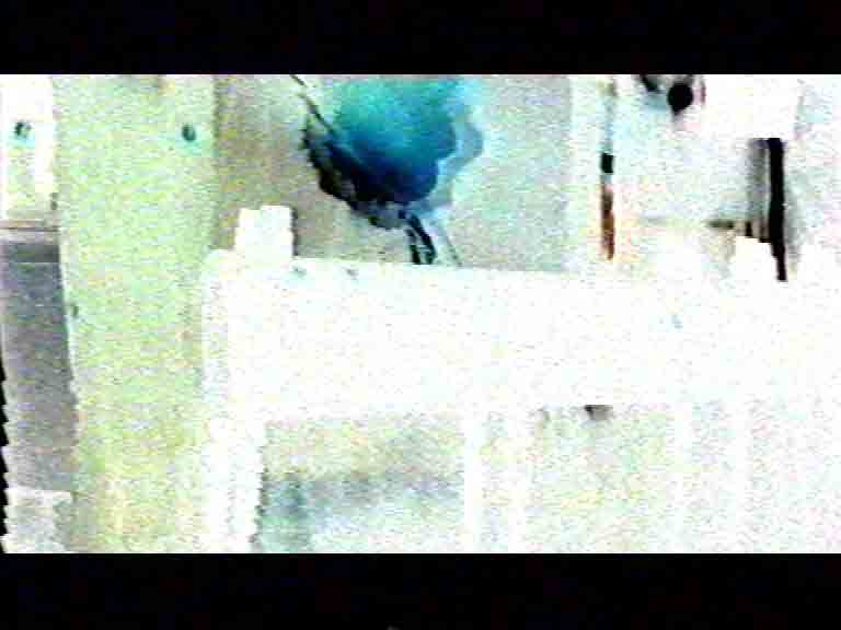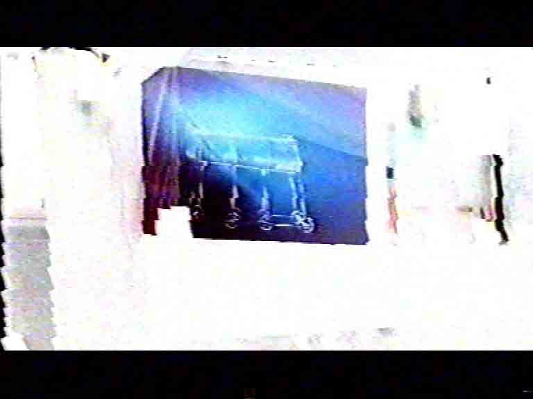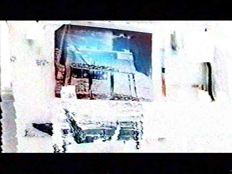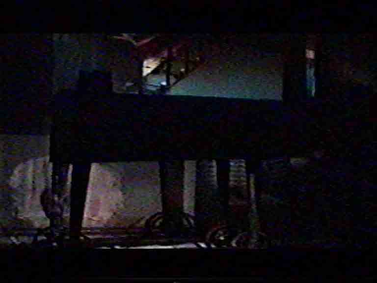 Performance “The Last Myth” with sculpture, fire and video. Night klub “Lyalka” in Lviv, 2000. Participants: Jan Potrohos (sculpture, instalation), Nirvana (3D modeling, animation), Viktor Lavnyi (installation, cutting), Artur Ruschak (sound track), Tanya Smriga (poetry), Taras Benyakch (audio), Ruslan Tremba and Maksym Sobuckyi (assistans).