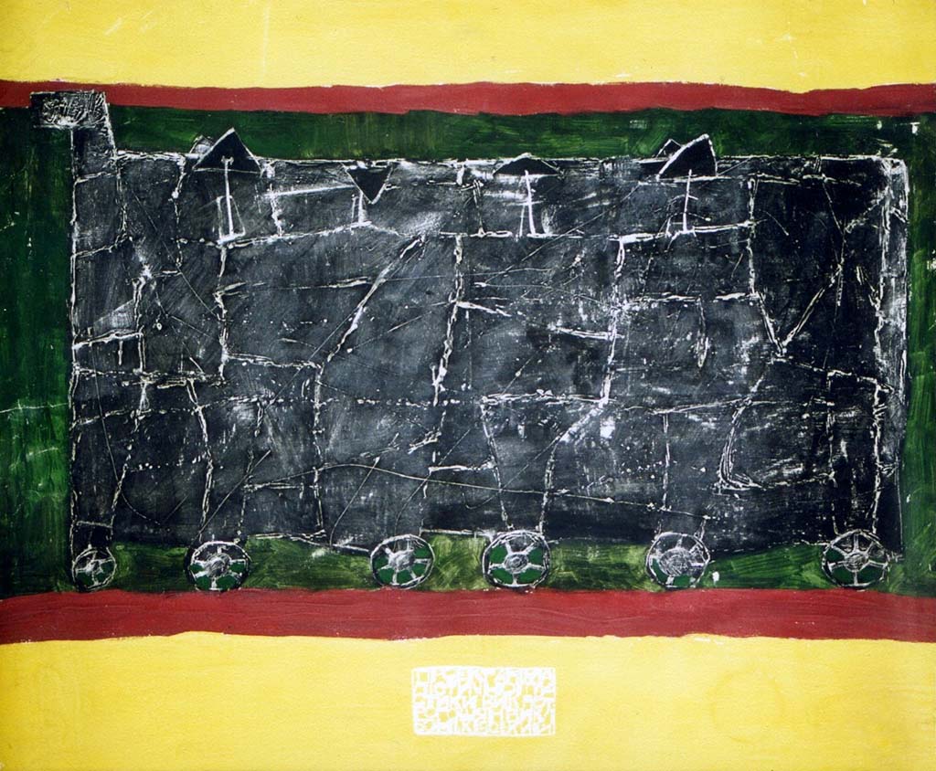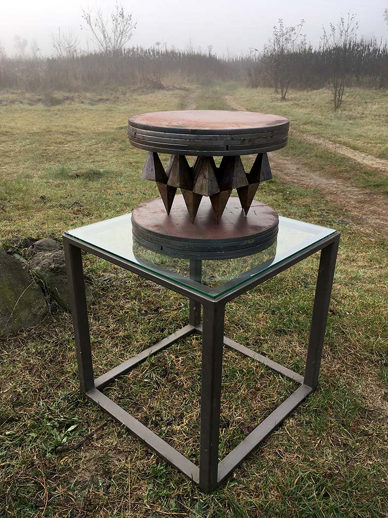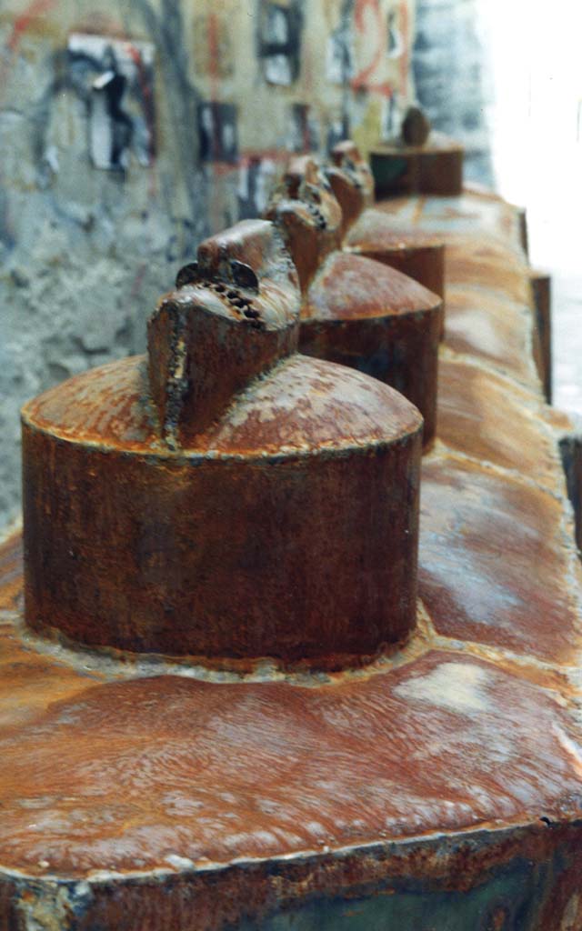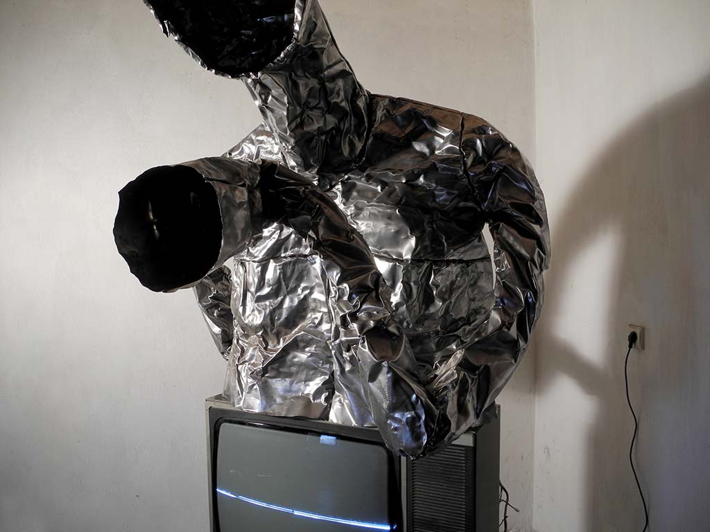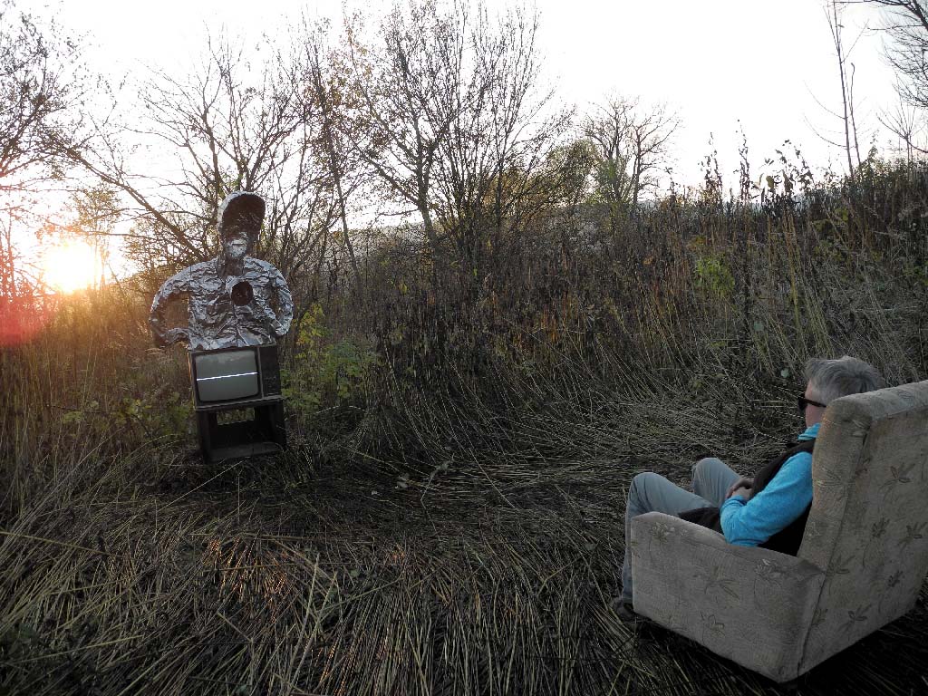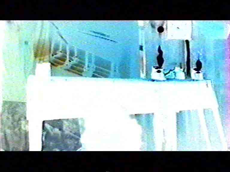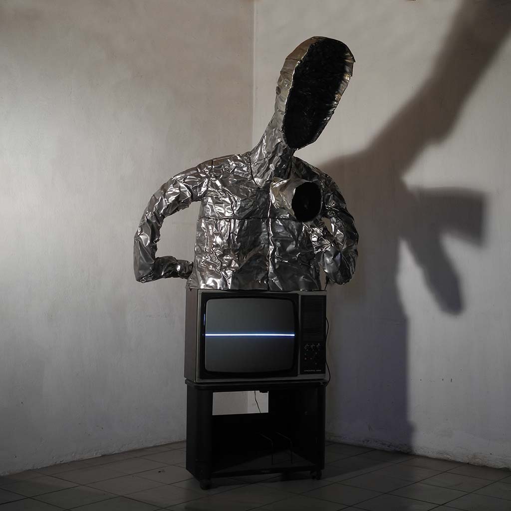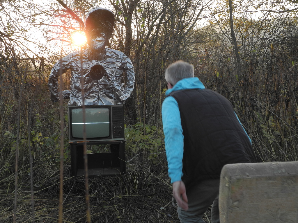 Performance “The Last Myth” with sculpture, fire and video. Night klub “Lyalka” in Lviv, 2000. Participants: Jan Potrohos (sculpture, instalation), Nirvana (3D modeling, animation), Viktor Lavnyi (installation, cutting), Artur Ruschak (sound track), Tanya Smriga (poetry), Taras Benyakch (audio), Ruslan Tremba and Maksym Sobuckyi (assistans).